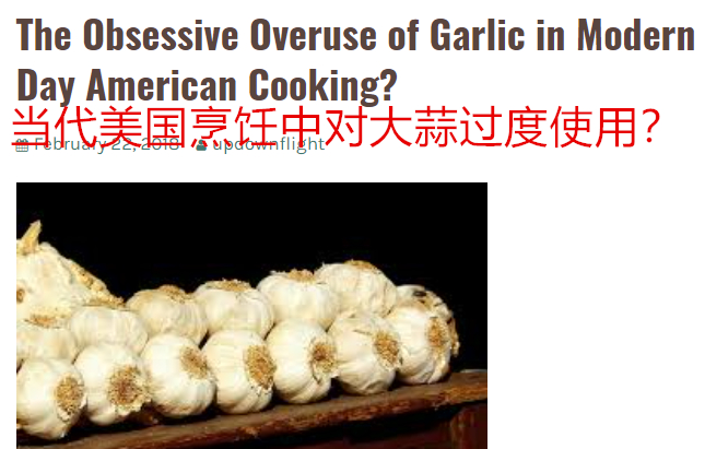 网名UPDOWNFLIGHT的主妇在她的博客中讲述,她的丈夫对大蒜过敏,五十年来闻蒜发呕起鸡皮且无法免疫,只因这个国家根本无法创造出不含大蒜的食谱。