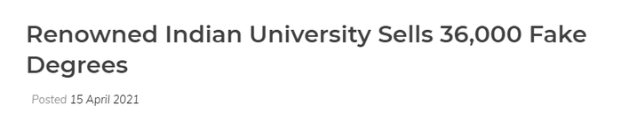 印度著名大学出售36000个假学位