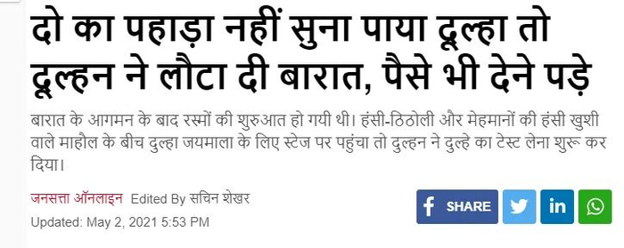 一位北方邦青年因流利背诵乘法口诀,娶到了当地地产大亨的千金