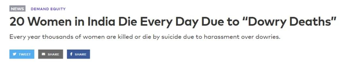 印度每天有20名女性因‘嫁妆死亡’而死亡