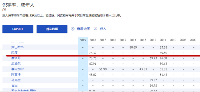 虽然印度的识字率位于低下水平