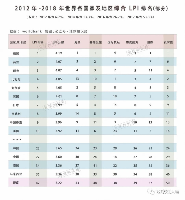 从排名上看,在2018年世界银行物流绩效指数(LPI)中,印度在全球160个国家中排名第44位,相较2016年的35位不升反降。虽然看起来印度港口排名还不算太低,但这却难改区域内港口竞争的残酷局面。如果仅说排名下滑的话,倒也不只是印度一家,不过从5位到7位的新加坡保持着前十名的地位,即使是马来西亚,下滑之后也排在印度前面,更不说一直在稳步上升的中国了。