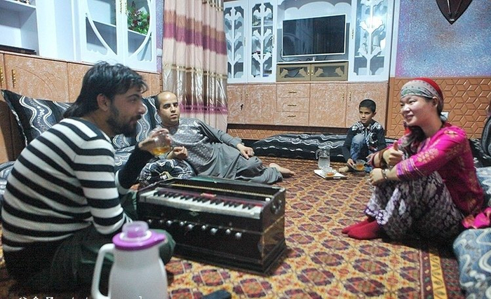 赛拉夫家距离酒店还挺远的,车子开了将近40多分钟,中途上来一个小伙子,个头不高,长得挺帅。赛拉夫说他会跟我们一起吃晚饭,见我们对小伙子无感,赛拉夫在憋了3分钟后,自己忍不住追问我们:你们真的不知道他是谁吗?他可是我们阿富汗超级有名的歌星法伊德(farid)啊!