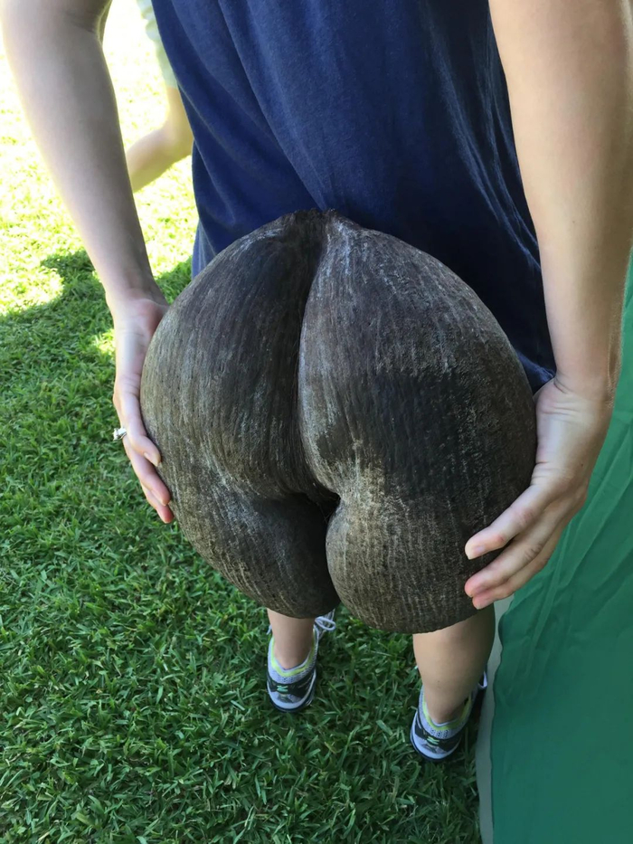 它宽约30厘米重达20公斤,身上背着好几条吉尼斯世界纪录。当地人叫它coco de mer或是Lodoicea callipyge,翻译过来可以理解为“海里的椰子屁股真漂亮”。当然这是比较知识分子的叫法,你也可以更粗暴一点,直接叫它海屁股。