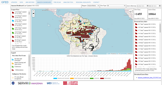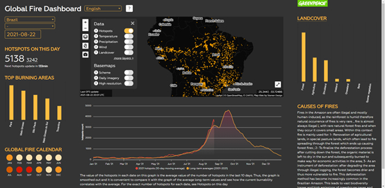 ●巴西森林火灾数量及烧毁面积现状(2021年8月22日) / Greenpeace Global Fire Dashboard