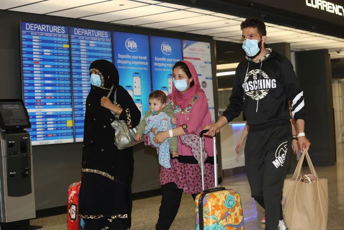 喀布尔沦陷后,华盛顿郊外的杜勒斯机场,陆陆续续有阿富汗人抵达。