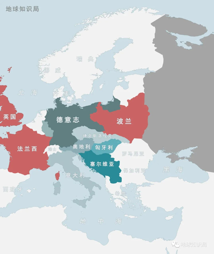 从普鲁士王国发展而来,由霍亨索伦家族统治的德意志帝国,几乎是一个纯德语国家,战后割让的仅仅是不多的边缘领土和人口;而南方的奥匈帝国,则由于多民族属性,在民族自决的原则下惨遭肢解。