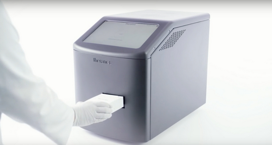 先让病人刺破手指采血,把样本放入看上去像加厚信用卡的检测盒中,再把检测盒放入更大的阅读器里。