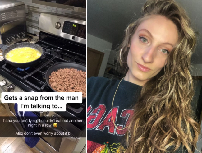 名叫 Kayla 的女士在tiktok上对伴侣的不忠公开处刑。据她所言,男友曾发给她一张自己做饭的照片。当她沉浸于心爱男人的可爱举动,并反复欣赏照片时,一抹邪魅怪影顿时让她三观炸裂。