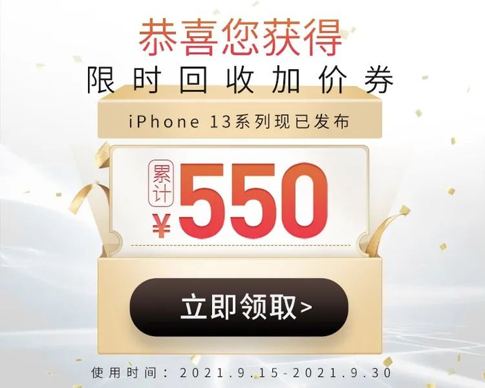 换新福利多多,回收当然也不甘落后。参与爱回收手机回收,最高可领累计550元回收加价券。