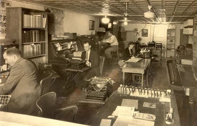 1949-1950年代的办公室,文书主要依靠不用插电的打字机图源:Early Office Museum