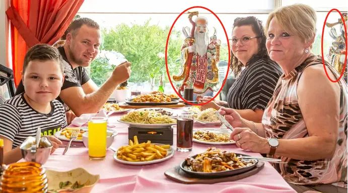 你看到餐桌上摆着的寿星公和财神爷,才确定自己没有走错地方。