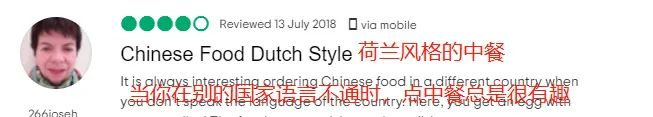 猫途鹰点评网上,在荷兰客源火爆的中餐馆,招牌图大多放的印尼菜。当地人也没有觉得货不对版,哪怕满桌都是沙爹和椰浆饭,他们也觉得这家店足够有中华特色。