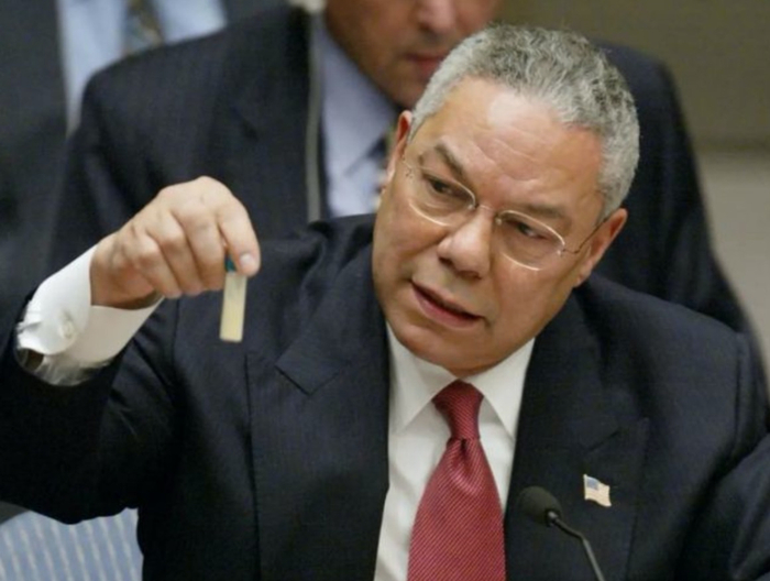 2003年2月5日,联合国安理会核建会针对伊拉克解除大规模杀伤性武装的外长会议上,时任美国国务卿的鲍威尔拿出了那一小管“洗衣粉”。