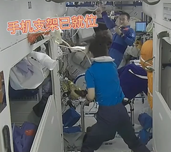 天上的人在吃饭。图源:@载人航天小喇叭