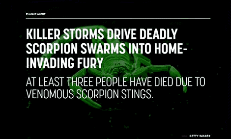 一些媒体也好像抓住了流量密码,从蝎子瘟疫到蝎子发飙致人死亡什么吸引眼球的标题都出来了。