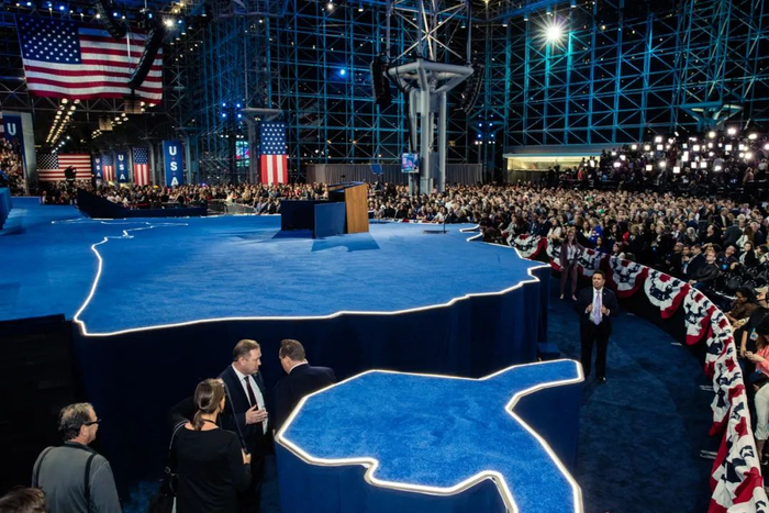 而选举夜,希拉里将发表讲话的地方也是团队精心挑选的贾维茨中心,这是一栋全玻璃的建筑,包括天花板都是玻璃,象征着希拉里胜选的历史意义。