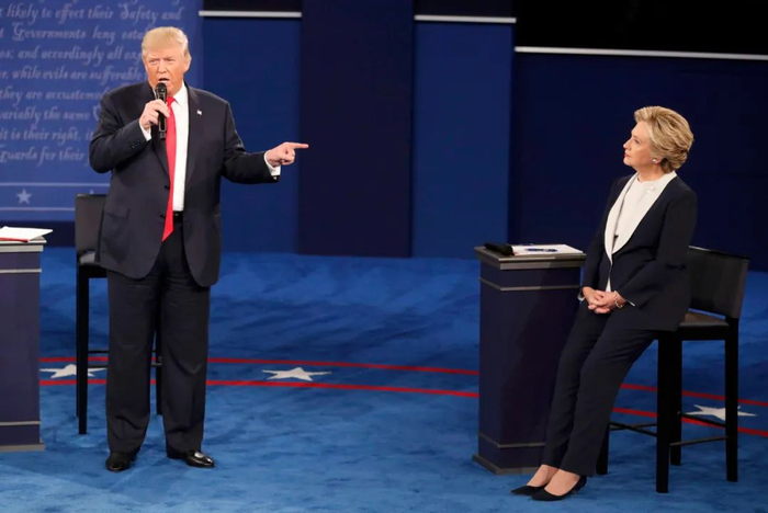 第二场辩论中,令观众印象最深刻的画面可能就是希拉里不停在特朗普面前踱步,而特朗普的表情显得非常不耐烦。这一次辩论,两人打成了平局。而一周后进行的第三场辩论,民众普遍认为希拉里表现更佳。