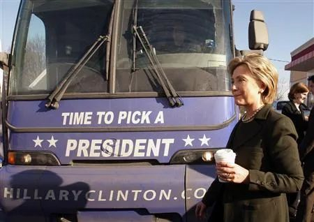 2008年希拉里第一次参选总统的时候,可以说是最“勤奋”的候选人,但是却吃力不讨好。她的竞选大巴每天都是最晚回酒店,第二天早上最早出发的那一辆。