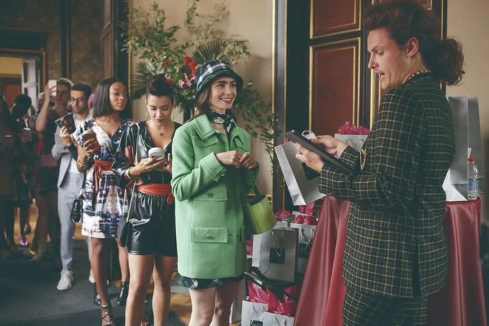 影片里的美国人艾米丽,不光有高亢的音量,还有浮夸的着装。色彩艳丽的服装、10厘米的高跟鞋和各种大牌饰品,让人眼睛忙不过来,却让法国人侧目。