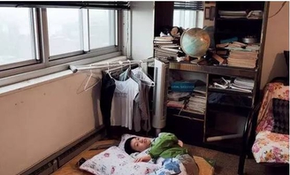 稍大的房子可 以隔出一块空间做客厅,放上一张餐桌和两三张凳子;有些房子的双人床边只能容下一张小几和两张凳子。有些房间小到连一张凳子都放不下,一进门就上床。