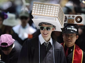 耶鲁大学有戴怪帽的传统,所以毕业典礼除了找身学士服,还得弄顶别具一格的帽子。
