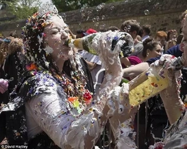 牛津大学作为英国最悠久的高等学府,毕业考试后会举办一场名为Trashing的“破坏庆典”。学生们会疯狂地互喷彩条和香槟以示庆祝,看来学霸们都憋坏了。