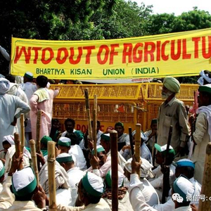 世界贸易组织(WTO)于1995年成立,出台多项自由贸易政策,大大降低了农作物在国际市场上的价格。比如,从1995年到2001年,国际小麦价格从216美元一吨降至133美元一顿;棉花价格从98.2美元一吨到49.1美元一吨;大豆从273美元一吨到178美元一吨。印度从WTO成立之初就是其会员国,国内农作物的价格在过去二十年里也跟随着国际市场走势下跌。