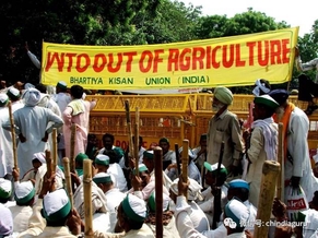 世界贸易组织(WTO)于1995年成立,出台多项自由贸易政策,大大降低了农作物在国际市场上的价格。比如,从1995年到2001年,国际小麦价格从216美元一吨降至133美元一顿;棉花价格从98.2美元一吨到49.1美元一吨;大豆从273美元一吨到178美元一吨。印度从WTO成立之初就是其会员国,国内农作物的价格在过去二十年里也跟随着国际市场走势下跌。