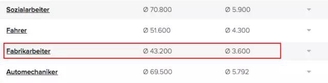 收入最低的行业是工厂工人,平均年工资为43200瑞郎,月收入为3600瑞郎(毛收入),约为3000欧。