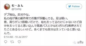 ▼ 我反对肥胖税。母亲受到药物副作用的影响,肚子比一般人浮肿,但双腿很细。