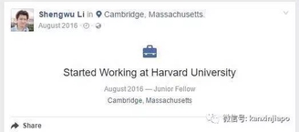 从2016年8月开始,李绳武前往哈佛,担任初级研究员。