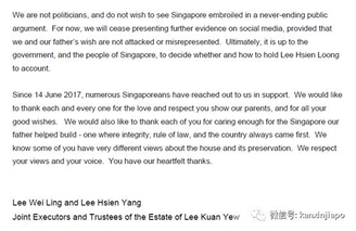 一直到7月6日,李显龙的弟弟和妹妹发表联合声明宣布“停火”:私下处理家事,并且不会再在社交媒体上发布更多的证据或证明。