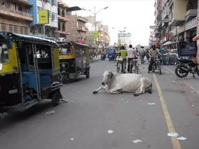 印度人不仅不吃牛肉,而且听任牛按照自己的方式生活。牛走累了,就地卧倒,睡上一觉,绝没有人惊扰它的美梦;牛饿了,随便走到一户人家,或是一个菜市场,马上就会有人把“饭菜”奉上。甚至还有人每天定时给流浪牛送食物。