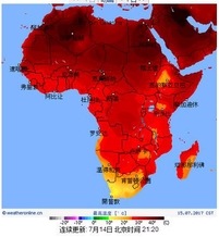 然而,从非洲最高气温图中,我们可以能清楚地看出,颜色最深的区域并不在赤道穿过的区域。这是为啥呢?