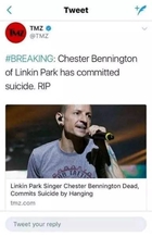 林肯公园另一位主唱麦克·信田确认了Chester Bennington自杀属实,并对此感到震惊和心痛,称稍后官方会发布声明。Chester昨天还在推特上转发了一条关于曼哈顿垃圾山的新闻。粉丝们纷纷在该推文下留言,不相信Chester已经走了。