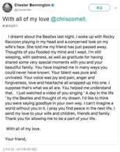 而7月20日恰好是克里斯·康奈尔的生日,不知是否巧合,查斯特选择在这一天离开这个世界……