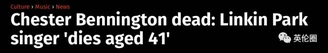 每日邮报:“林肯公园主唱,六岁孩子的爸爸查斯特·班宁顿在好友Chris Cornell诞生之日自杀身亡,享年41岁。”