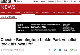 BBC News:林肯公园主唱查斯特·班宁顿自杀身亡