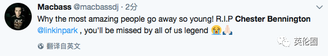 “凭什么天妒英才!!安息吧查斯特·班宁顿,我们会一直怀念你的。”