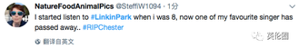 “我开始听林肯公园时才8岁,现在我最爱的歌手去世了。。。。。。”