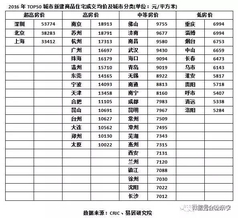 2016年TOP50城市新建商品住宅成交均价及城市分类(单位:元/平方米)如下表: