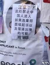 2017年2月份,一位悉尼华人爆料,他们公司位于莱德的一处建筑工地的外围栅栏上,出现了一张反亚裔的种族歧视海报,且满含针对性地贴在了这家公司两名华人中介的脸上。海报标语上充斥着针对亚洲人的偏见与攻击:“亚洲人别再来了!面孔和语言都不一样,他们来了就不走,导致澳洲人失业!”