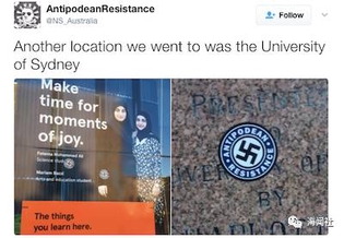据擎宇介绍,今年4月中旬左右,悉尼大学也曾出现过这个组织的影子。“该组织在学校里到处张贴纳粹标识,几乎人来人往的地方都能见到,尤其是有国际学生面孔的海报上,这种标识特别的多。当时,悉尼大学学生会一发现就着手清除了,但是这个小,贴得又比较多,地点也分散,看到的人不少。”