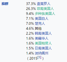 我们来看下关岛的族群构成(2015年统计数据,总人口16万人):