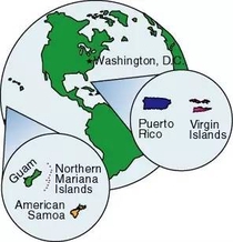 像关岛这样的美国海外领地还有波多黎各、美属维京群岛、北马里亚纳群岛和美属萨摩亚。