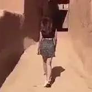 视频中,一名沙特女子身着露脐上衣和超短裙,一头棕褐色秀发裸露在外,在沙特一座古城中散步。