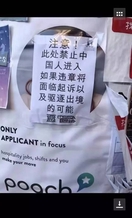 24日是澳各高校开学首日,上述两所澳名校却惊现辱华海报,上面用生硬的中文写道:“注意!此处禁止中国人进入。如果违章将面临起诉以及驱逐出境的可能。”虽然落款为该校中国学生会、全国学联会及学生总会的标志,但这些组织发表联合声明,确认这些海报不是他们制作的。