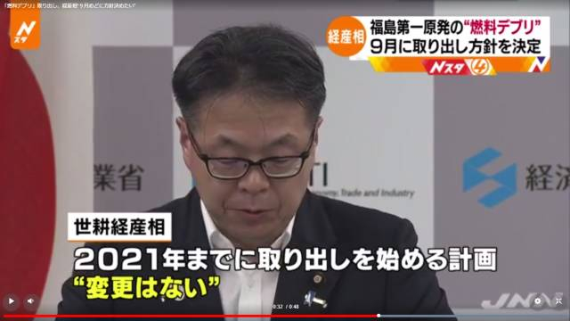 25日内阁会议结束后,日本经济产业大臣世耕弘成记者会上表示,争取于9月敲定取出残渣的方针。