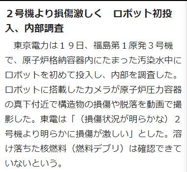 这次揭露的3号机组内部情况的消息,其实至少让人心定了,核燃料终于找到了,在水底成固态熔岩状(虽然官方只说推测是核燃料)。而那些说熔穿了安全壳进入地下水的谣言也不攻自破了。